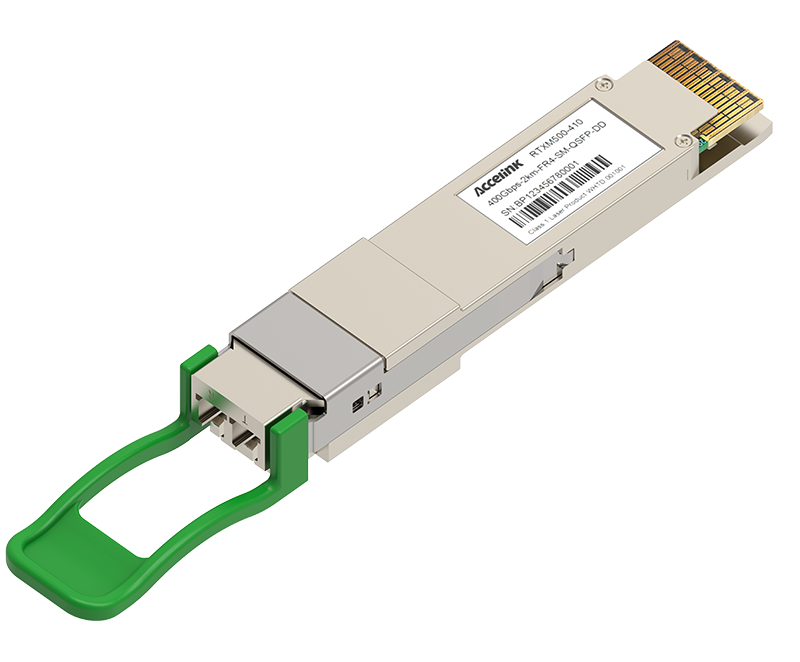 RTXM500-416 400G QSFP-DD LR4 transceiver modules are designed for use in 400 Gigabit Ethernet links on up to 10km of single mode fiber. They are compliant with the QSFP-DD MSA, IEEE 802.3cu and 100G Lambda MSA.The optical transceiver is RoHS compliant.